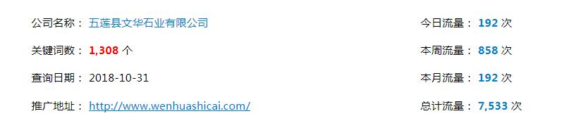 簽約五蓮縣文華石業(yè)有限公司網(wǎng)絡(luò)推廣項目。目前網(wǎng)絡(luò)推廣,百度首頁關(guān)鍵詞已達1360多個。項目穩(wěn)定進行中。
